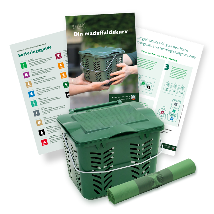 Det vil fortsat være muligt at få poser, køkkenkurv og holder til madaffald på Bispeengen Genbrugsstation, Frederiksberg Rådhus Borgerservice, KU:BE og Medborgercentret på Nordens Plads.