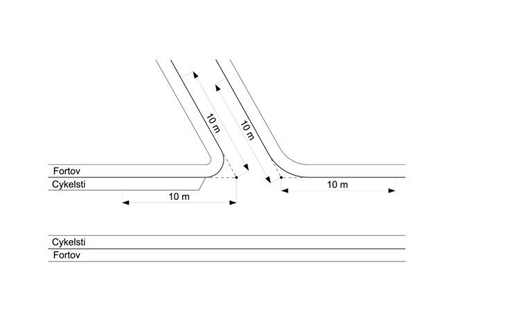 Du må ikke standse eller parkere i et vejkryds eller inden for 10 meter fra den tværgående kørebanes eller cykelstis nærmeste kant.