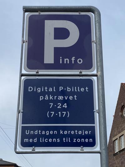 I tidsbegrænsningen skal du ved parkeringens start benytte parkeringsskiven. Udenfor tidsbegrænsningen skal bilen være digitalt registreret enten med licens eller billet.