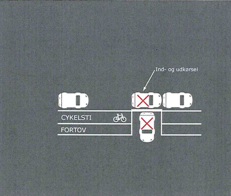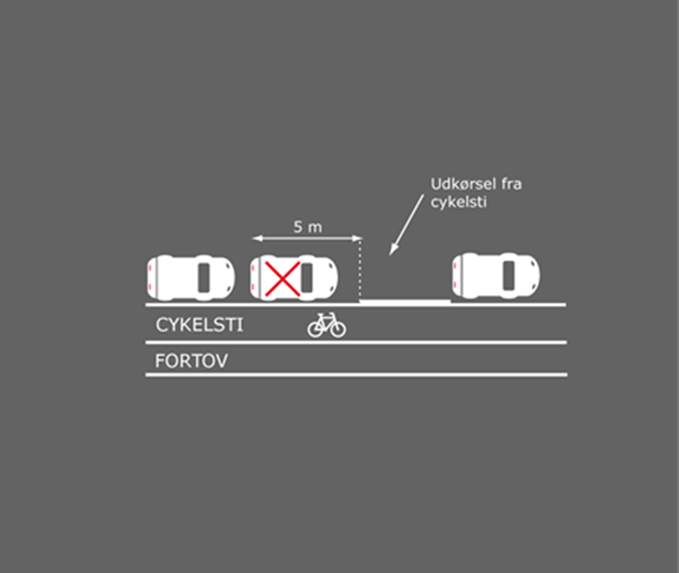 Du må ikke standse eller parkere ud for en cykelsti-udkørsel eller mindre end 5 meter foran udkørslen.