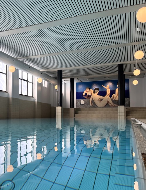 Renoveringen har ikke kun løftet den historiske svømmehal fra 1934 til nutidens højeste standarder inden for miljø og sikkerhed, men er udført med dyb respekt for svømmehallens arkitektur og karakter. Blandt andet vil man kunne nyde de smukke og nænsomt afrensede mosaikker af Vilhelm Lundstrøm fra perioden 1933 til 1937, der efter grundig konservatorbehandling nu fremstår med fornyet farveglød. Samtidig vil rutsjebanen vende tilbage i en ny grøn farve, som er blevet nøje afstemt efter svømmehallens oprindelige farvesætning. Rutsjebanen har samme længde på 105 meter og vil sno sig i samme forløb som tidligere.