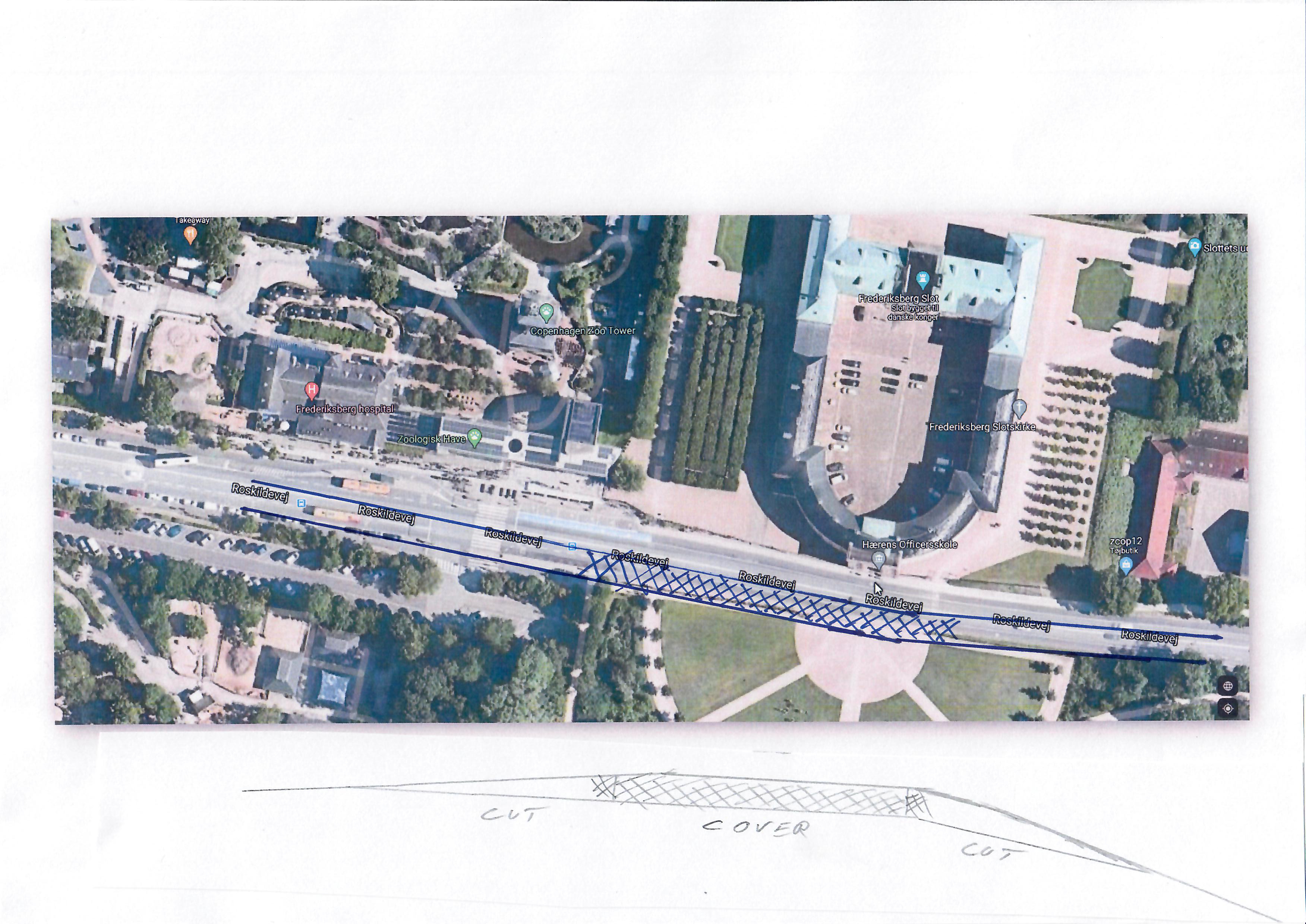 1) Der skal graves ned, så der er uhindret adgang fra Frederiksberg Bakke (Slottet) til Søndermarken. Det er det eneste rigtige for at sikre, at børnefamilierne kan færdes trygt på tværs af Roskildevej.