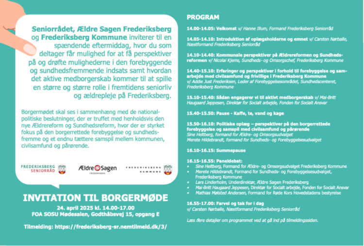 Den 24. april 2025 inviterer vi igen til borgermøde, hvor overskriften er ”Forebyggelse og et aktivt medborgerskab”.